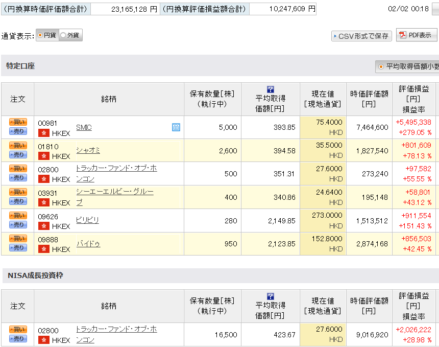 ポートフォリオが少し変わったりしていますが、買ったらガチホ、中華しか勝たんの精神は変わっておりません。