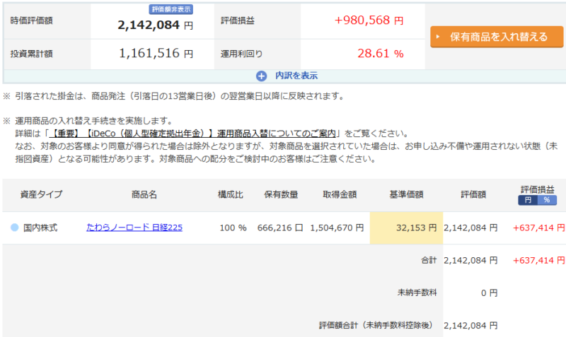 iDeCoは日経225インデックスに投資しています。