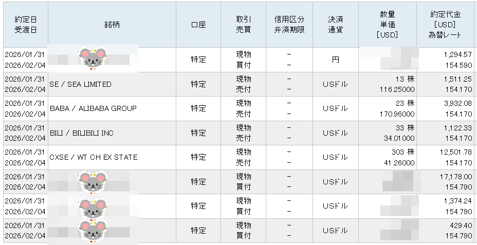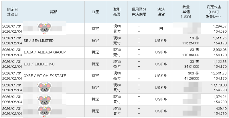 CXSE、BILI、BABA、SEを売却しとある米国株(銘柄X🐭)を購入しましたッ!!